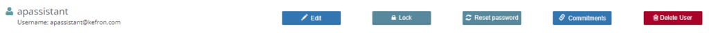 For each user, you can edit the user’s profile (permissions), lock the user from the system, reset the user’s password, see what documents are currently assigned to that user through commitments and delete the user account necessary.